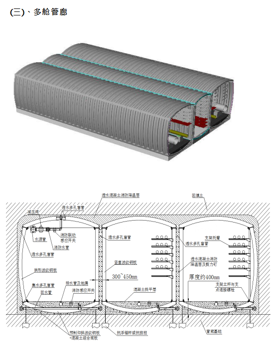 ① 截面形狀多為拱形或圓形,空間利用率比矩形管廊小 1/3~2/5,直接影響投資;