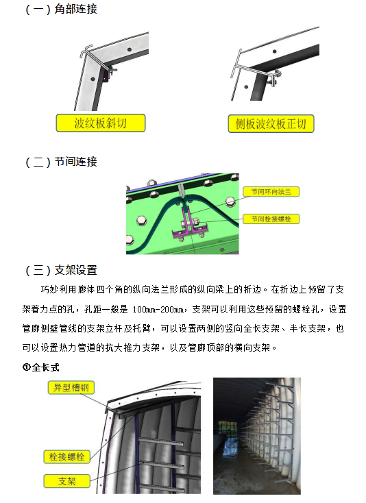 三、以上的國內外的鋼管廊,其橫截面基本上都是圓形、半圓形、馬蹄拱形等,都直接采用了公路涵洞鋼波紋管的技術,故以下將上述鋼管廊暫稱為“涵洞型”波紋鋼管廊。